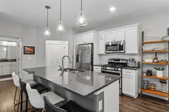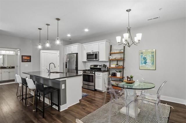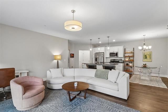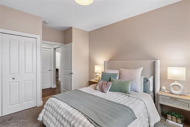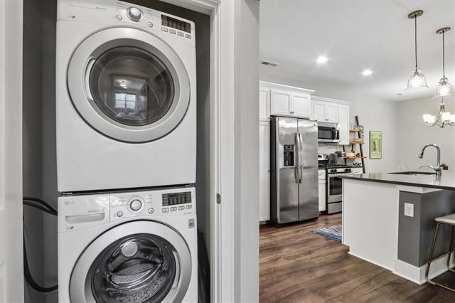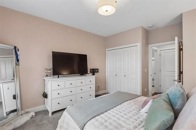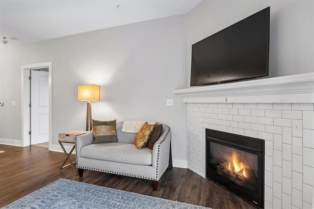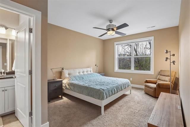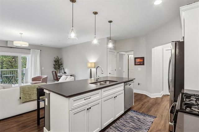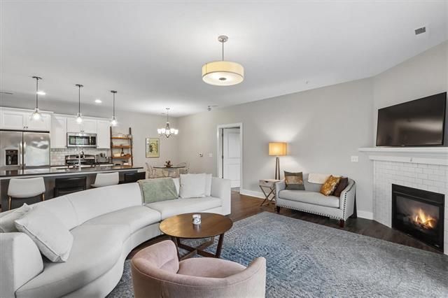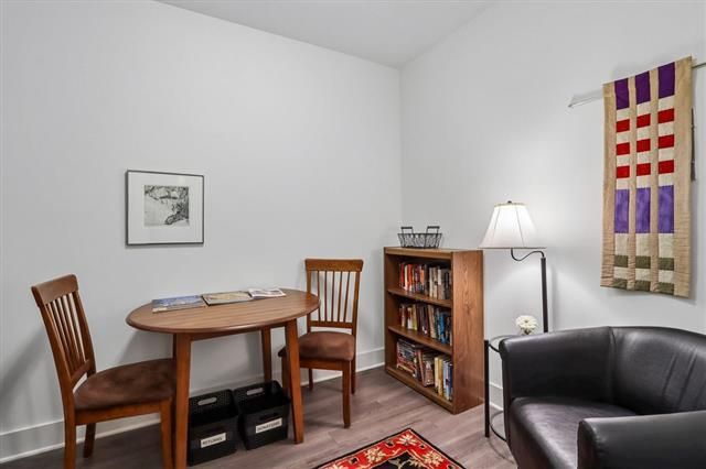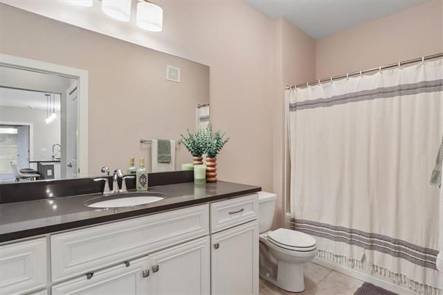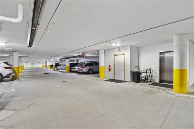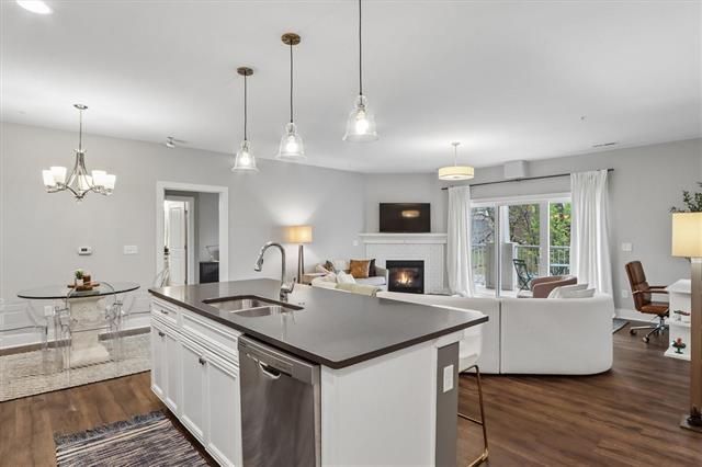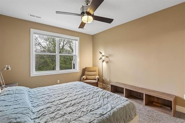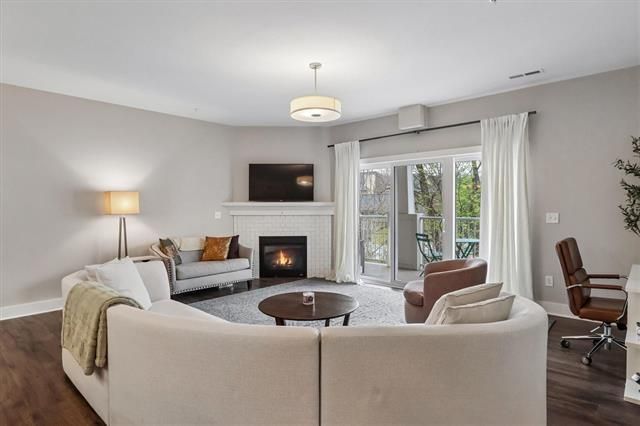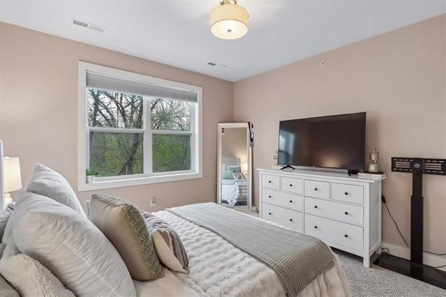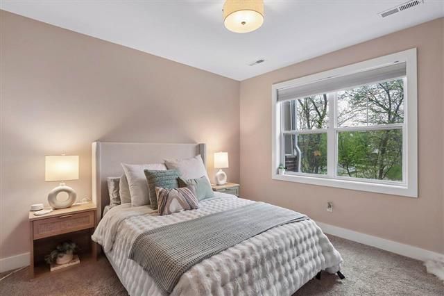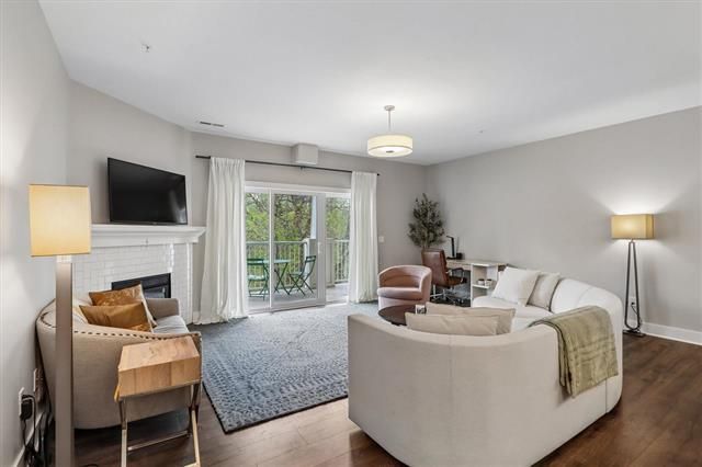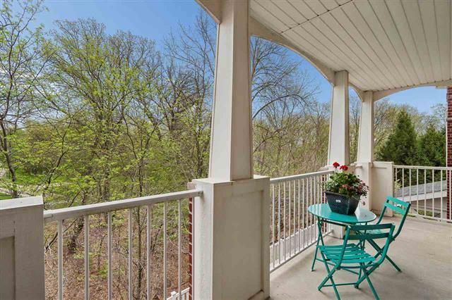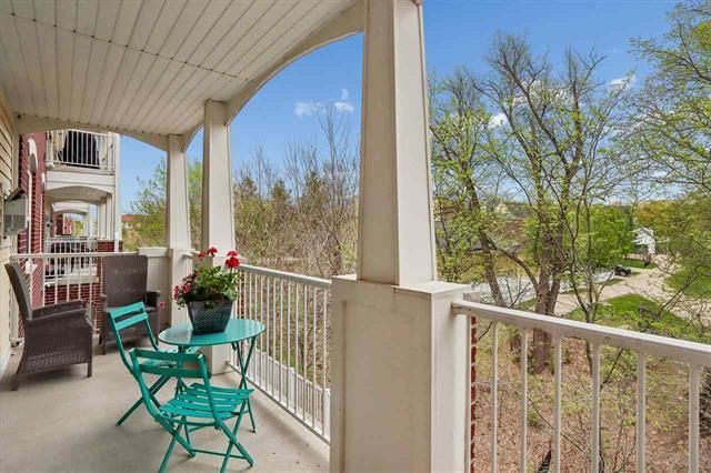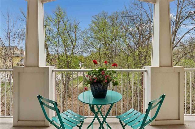Set along a wooded ravine in the Peninsula Neighborhood of Iowa City, this 2-bedroom, 2-bath condo at The Oaks offers a comfortable layout with a peaceful natural backdrop. The main living area is open and easy to live in, with the kitchen, dining area, and spacious living room all connected. A gas fireplace anchors the corner of the living room, while sliding doors open to a covered balcony overlooking the ravine. The kitchen features quartz counters, a nice-sized island with breakfast bar seating, pantry storage, and good flow for everyday use or hosting. The primary suite is surprisingly large, with wooded views, a generous closet, and an ensuite bath with a spacious double vanity. The second bedroom is set on the opposite side of the unit, offering nice separation and its own view toward the trees. Additional conveniences include a foyer coat closet, in-unit laundry closet with stacked washer/dryer, private storage room, and Space No. 7 in the secure underground garage. The Oaks features a welcoming foyer entrance, building elevator to all floors and garage, library, and three exercise rooms for cardio, weights, and yoga. Nicely positioned near neighborhood parks, walking trails, and the everyday convenience of the Peninsula, with quick access back to downtown Iowa City and Iowa River Landing.